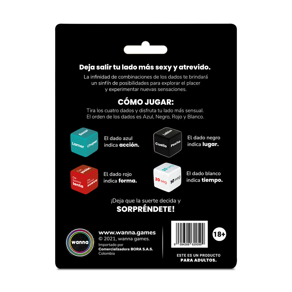 Saca el lado más sexy y atrevido con estos dados que lo llevarán a vivir el sexo al límite. Está compuesto por cuatro dados con características especificas para hacer de su velada, la mejor noche de todas.